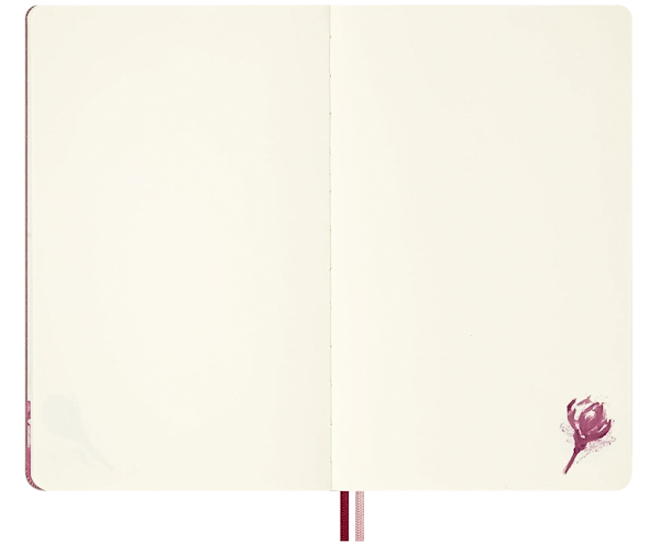 Усередині внутрішньої кишені, що розширюється, знаходиться історія Moleskine, вітальна листівка з конвертом та тематичні наліпки. Форзаци пофарбовані у колір ніжної сакури. У кутках деяких сторінок розміщені зображення квітів.