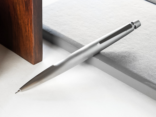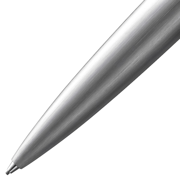 Відмінні риси: об'ємний корпус із нержавіючої сталі з матовим поліруванням. Деталі корпусу виконані з нержавіючої сталі з контрасним глянцевим поліруванням. Металевий кліп оснащено спеціальним пружинним механізмом, котрий дозволяє легко закріпити та відстебнути олівець від блокнота або кишені піджака однією рукою.