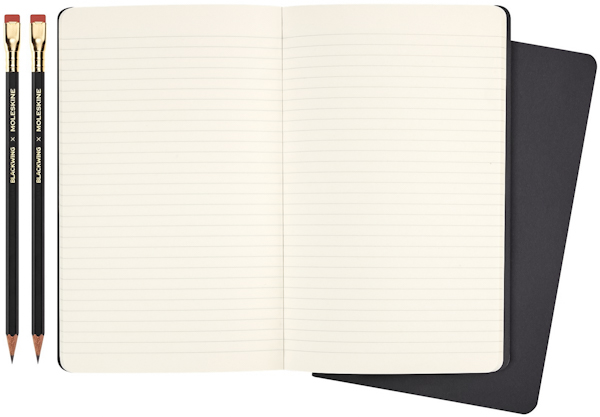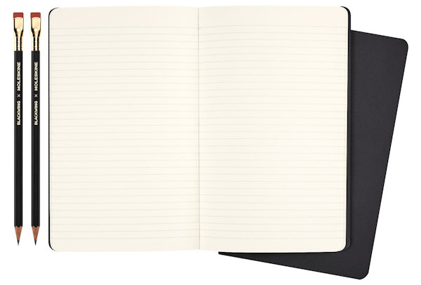 Цікава колаборація італійського бренду Moleskine та американського бренду Blackwing — творця преміальних графітних олівців. Ця модель письмового інструменту ідеальна для замальовок і записів, залишає м'які та насичені лінії.