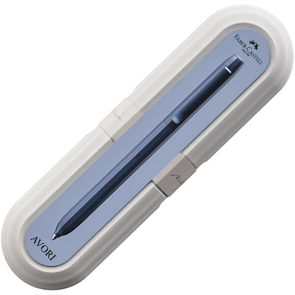 Стильна кулькова ручка з поворотним механізмом подачі стрижня з серії ергономічного письмового приладдя на кожен день Faber-Castell Avori. Синій стрижень. Картонне пакування. Виробництво — Faber Castell (Німеччина).