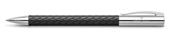 Напрочуд зручна кулькова ручка з ексклюзивної серії преміального письмового приладдя Faber-Castell Ambition. Виконана з дорогоцінної смоли та хромованої сталі. Є кліпса. Поворотний механізм. Чорний стрижень. Письмовий вузол: B (товстий). Діаметр кульки: 0,9 мм. Розмір ручки: 14,8 х 1,1 см. Виробник — Faber-Castell (Німеччина).