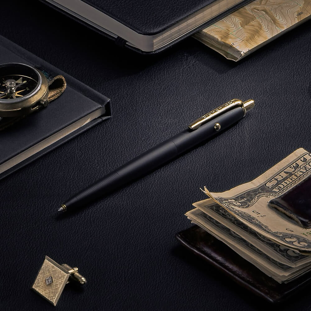Корпус оновленого випуску ручки Астронавт виготовлений із латуні із матовим покриттям Cerakote чорного кольору. Cerakote® — це покриття на основі керамічного полімеру, стійке до корозії, хімічних речовин та коефіцієнтом тертя конкурує з тефлоном. Деталі вкриті золотим нітридом титану аерокосмічного класу, який використовується у високопродуктивних інструментах та розкішних годинниках.