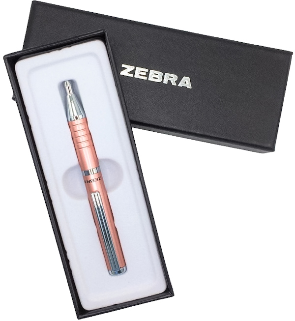 Міцний металевий корпус Zebra Slide із нержавіючої сталі виглядає елегантно та забезпечує довговічність письмовому інструменту. Завдяки зручному телескопічному механізму корпус ручки подовжується для письма та легко складається для зберігання, що робить її особливо зручною для щоденного використання. Довжина у складеному вигляді приблизно 10,5 см, у розкладеному — 13,4 см.