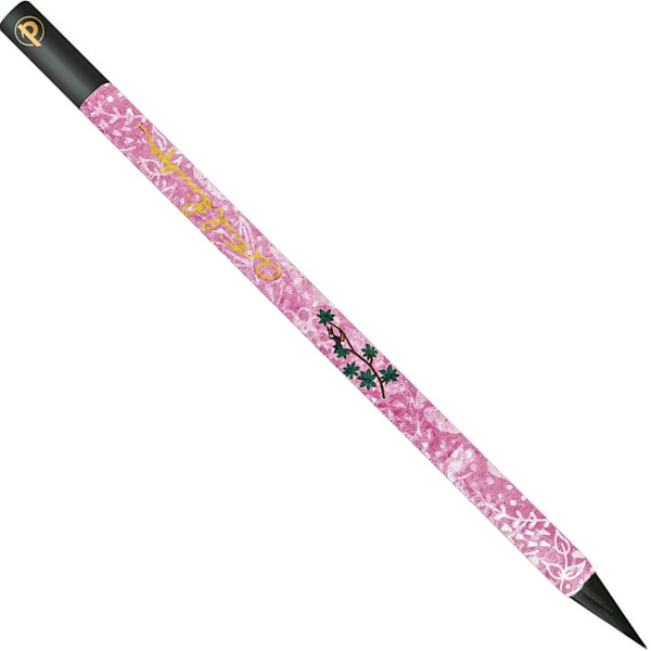 Графітний олівець має круглий корпус. Виконаний із чорної деревини сертифікованої FSC. Олівець прикрашає барвистий дизайн із нанесенням золотого фольгованого логотипа компанії.