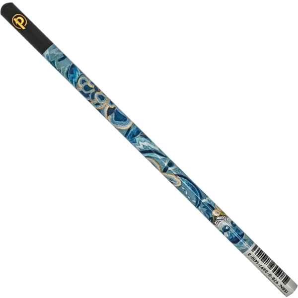 Графітний олівець має круглий корпус. Виконані із чорної деревини сертифікованої FSC. Олівець прикрашає барвистий дизайн із нанесенням золотого фольгованого логотипа компанії.