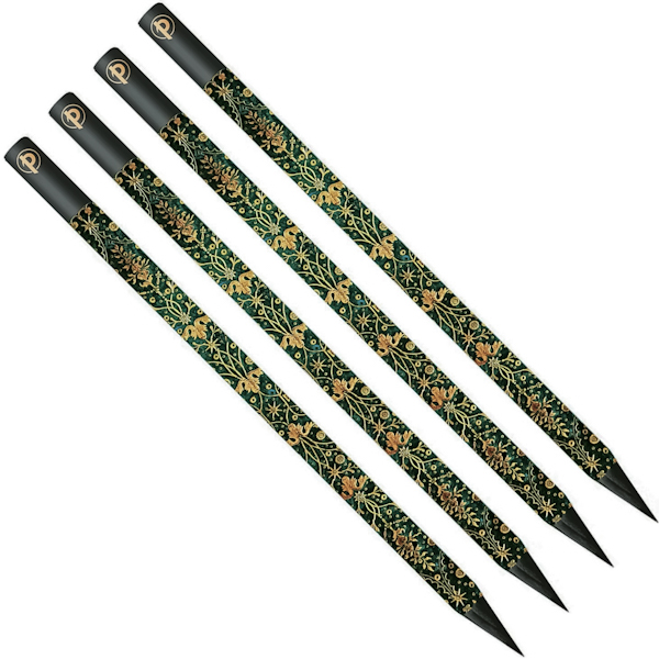 У набір входить чотири графітні олівці з круглим корпусом. Виконані із чорної деревини сертифікованої FSC. Кожен олівець прикрашає барвистий дизайн відповідний до теми набору із нанесенням золотого фольгованого логотипа компанії.