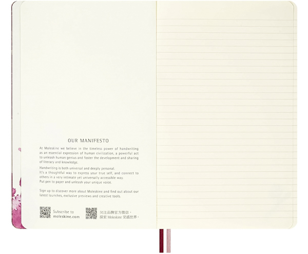 Усередині внутрішньої кишені блокнота знаходиться історія Moleskine, вітальна листівка з конвертом та тематичні наліпки. Форзаци пофарбовані у колір ніжної сакури. У кутках деяких сторінок розміщені зображення квітів.