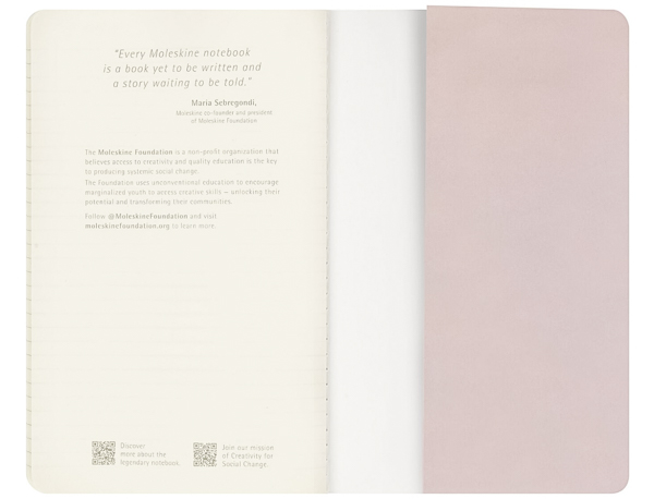 — у зошита 80 сторінок в лінію безкислотного паперу кольору слонової кістки 70 г/м2