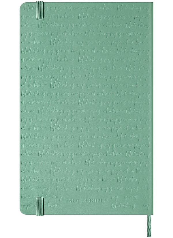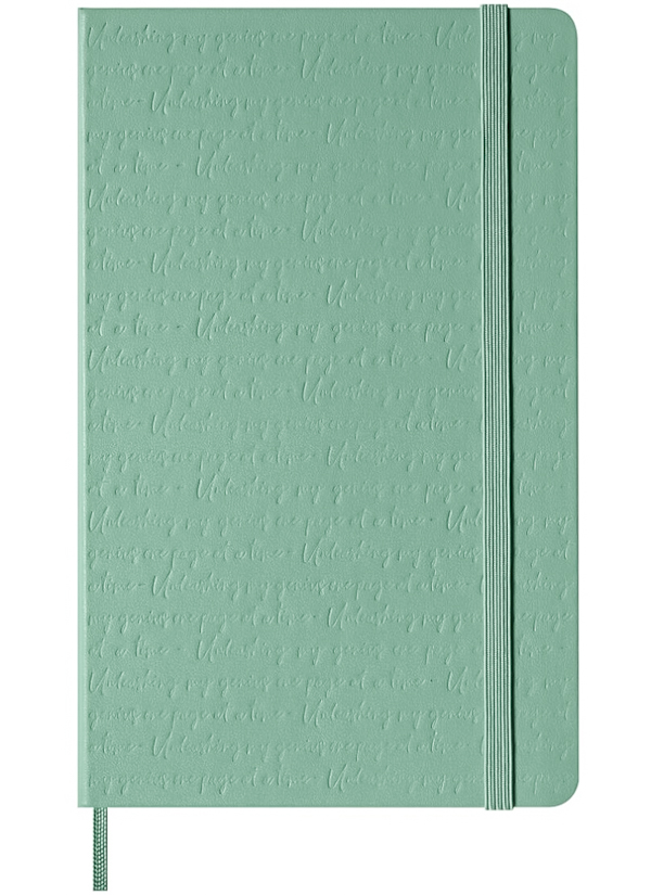 Уся палітурка покриває мотивуюче послання: "Unleash your genius one page at a time" ("Розкрийте свій геній, сторінка за сторінкою"). Заохочуючи пробудити свій внутрішній талант та творчий потенціал з кожною перегорнутою сторінкою у блокноті Moleskine.