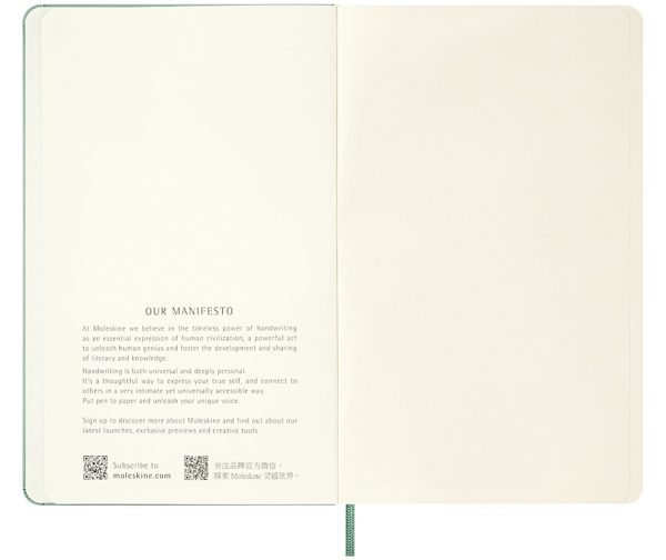 Спеціальний випуск однієї з найпопулярніших класичних моделей блокнотів італійського виробника Moleskine у ​​трендовому кольорі 2026 року. Натхненням до створення цієї серії стало письмо від руки.
