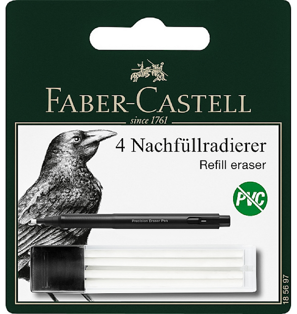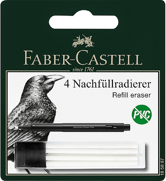 Змінні гумки для ручки-ластика Eraser Pen, що не залишає слідів пилу після стирання, дозволяє працювати з мілкими деталями. Призначена для використання з графітовими та кольоровими олівцями. Виробник — Faber-Castell. Країна походження — Китай.