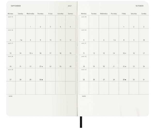 Щотижневик Moleskine Classic Weekly на 18 місяців у м'якій обкладинці. Він створений для тих, хто хоче почати вести записи з липня місяця 2026 року по грудень 2027 року, що робить його ідеальним для студентів та викладачів.