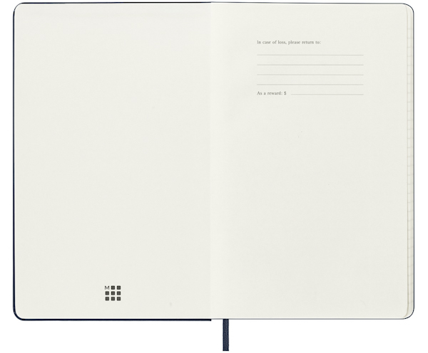 Щотижневик має всі класичні риси легендарного Moleskine: еластична гумка-фіксатор, округлені куточки, вбудована закладка-лясе та розтяжна паперова кишеня на внутрішній стороні обкладинки. До нього можна складати візитки, дрібні документи та записки. На титульній сторінці є місце для запису інформації про власника та поле для суми винагороди («У разі втрати готовий відшкодувати тому, хто знайшов...»).