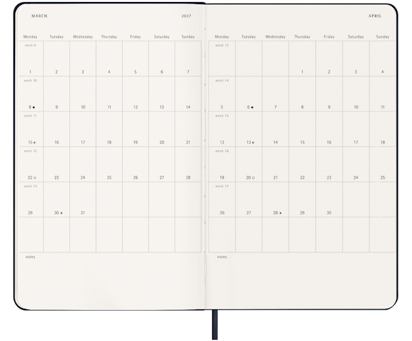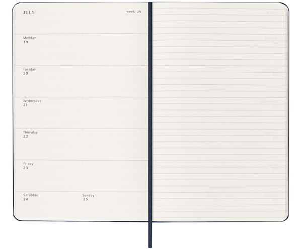 Щотижневик Moleskine Classic Weekly на 18 місяців у твердій обкладинці. Він створений для тих, хто хоче почати вести записи з липня місяця 2026 року по грудень 2027 року, що робить його ідеальним для студентів та викладачів.