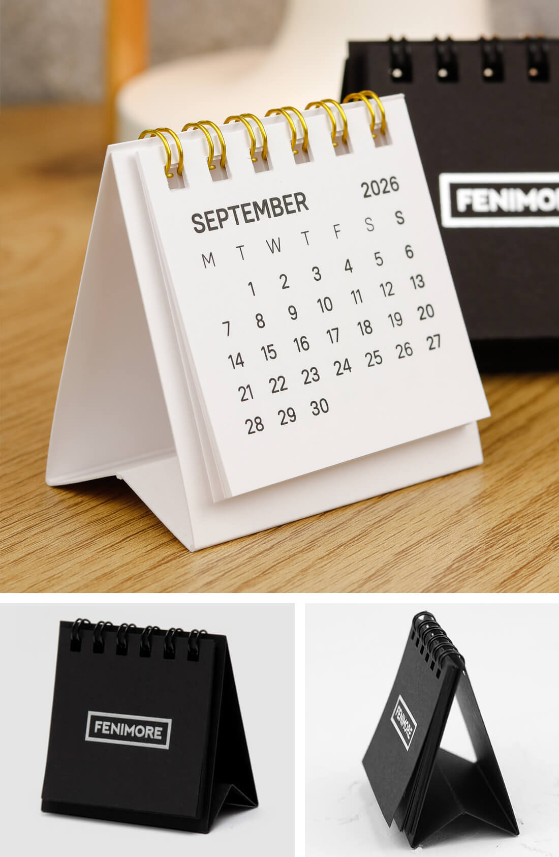 5. NEW! Міні-календар з логотипом компанії або написом. На звороті можна розмістити QR-код з посиланням на сайт, кілька рядків про компанію, контактну інформацію або щось інше. Завдяки своєму невеликому розміру – 6 х 6 см – і компактній конструкції, може бути як настільним, так і кишеньковим варіантом календаря. Ідеальний варіант невеликого корпоративного подарунка чи доповнення до основного подарунка до будь-якого свята!
